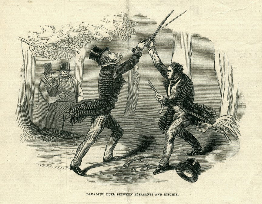 Image: Newspaper illustration about a duel between John Hampder Pleasants and Thomas Ritchie, Jr. (Virginia Museum of History and Culture.