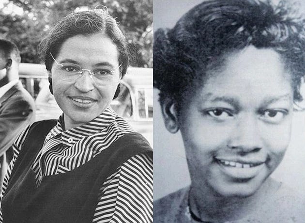 The myth is that Rosa Parks was a tired, accidental heroine who had had enough when she refused to give up her seat to a white passenger on December 1, 1955. The myth is that Claudette Colvin, the 15 year old girl who refused to give up her seat 8 months earlier, was ignored because she was darker skinned, pregnant, and unmarried. The truth is more nuanced. Both were “rebellious,” the white and Black establishment looked down on both, and neither was the first Black person to refuse to give up a seat for a white passenger. The fight for equality, and injustice was long and difficult and it was a collective struggle, not an individual one.