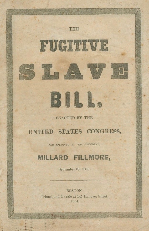 Image: Fugitive Slave Law of 1850. United States Congress. The Fugitive Slave Bill. Boston: Printed and for sale at 145 Hanover Street, 1854. Broadside. Source: National Museum of African American History and Culture, Smithsonian Institution. https://nmaahc.si.edu/object/nmaahc_2012.46.5.